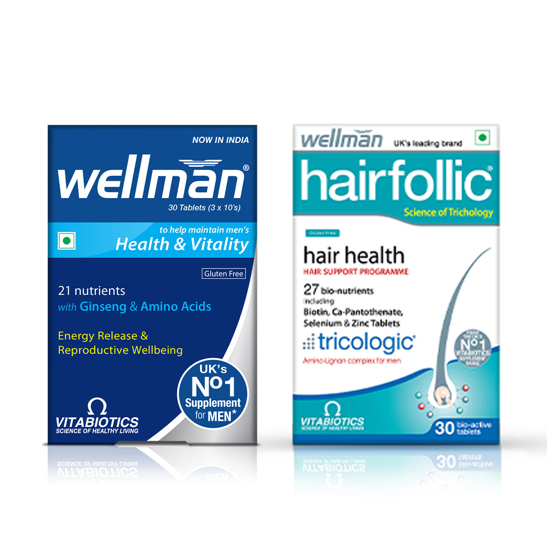 Our flagship multivitamin for men with 21 nutrients, specially developed to help maintain overall health and vitality. Wellman is also the UKĂ¢â‚¬â„¢s No.1 menĂ¢â‚¬â„¢s supplement brand. Combined with Wellman Hairfollic, which provides advanced support with goodness of the exclusive Trichologic Amino- lignan complex. Hairfollic delivers its benefits through the bloodstream directly to the hair roots and has been well researched to provide advanced benefits.Ă‚Â