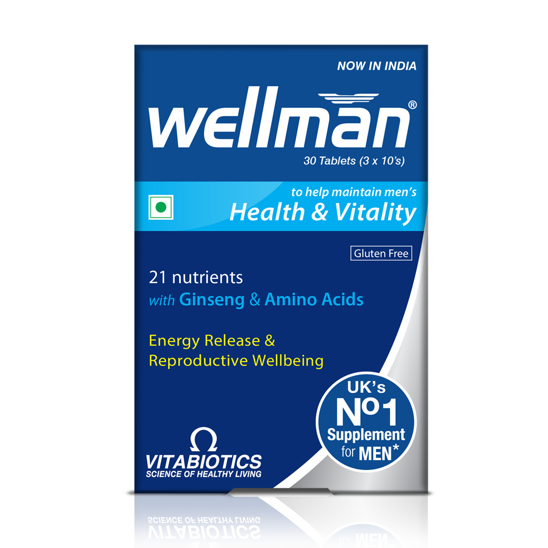 Wellman is our flagship multivitamin with 21 essential vitamins and minerals specially developed for men to help maintain overall health and vitality. Also it includes Ginseng and amino acids like L-Arginine that boosts energy release and reduces fatigue.